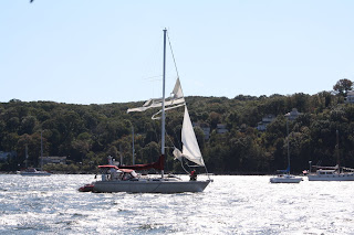 One other event this week is worth mentioning. Before we left Annapolis we were hailed by a single-hander behind us and he was asking for help to get going out of the harbor. He had a 30 foot boat with an outboard motor. But he was having trouble with the motor. He asked for a tow while he got his sails up, to head him in the right direction. He immediately got stuck getting his anchor up while Ken tried to assist from the dinghy, then his roller furling gear pulled away from the forestay, but he finally got underway with both sails flying and threaded his way out after Ken towed for the first 75 feet. We saw him out in the bay as we left that day; we hope he gets things straightened out, as he was a little on the edge, maintenance wise!